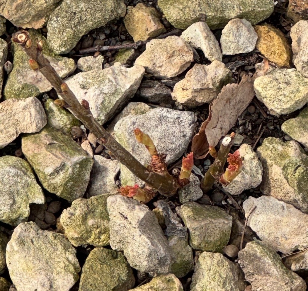 Other than that, we did a quick pass by the historic cemetery, and the garden there is starting to pop up. Soon it will be time to add the annual mulch topper. This year it will be a “daylily seedling additions only” year at the historic cemetery while I see how the daylilies shape up from the past two years’ plantings. Quite a few of the purchased daylilies I planted in fall of 2024 never showed up in 2025. I am, probably a bit optimistically, hoping they will make an appearance in 2026. We shall see. Either way, any daylily seedlings that I add to that garden this year will be self-seed I harvested from that garden last year, so that will be a fun “first”. I am looking forward to that!