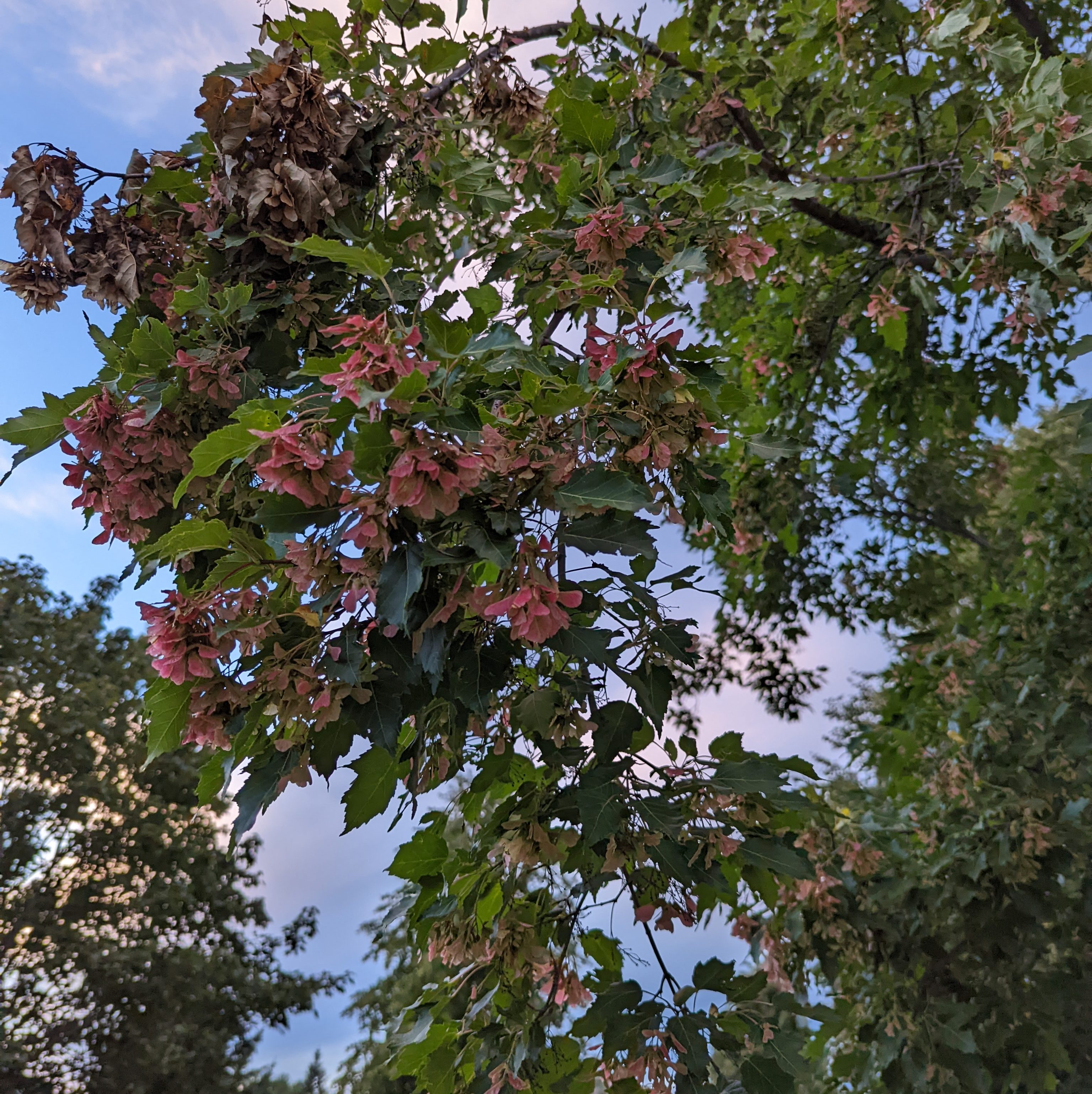It is Amur Maple seed time. The squirrels are going bonkers. The seeds are all over the sidewalk and the lawn. Can’t say I mind. Aren’t those colors gorgeous?