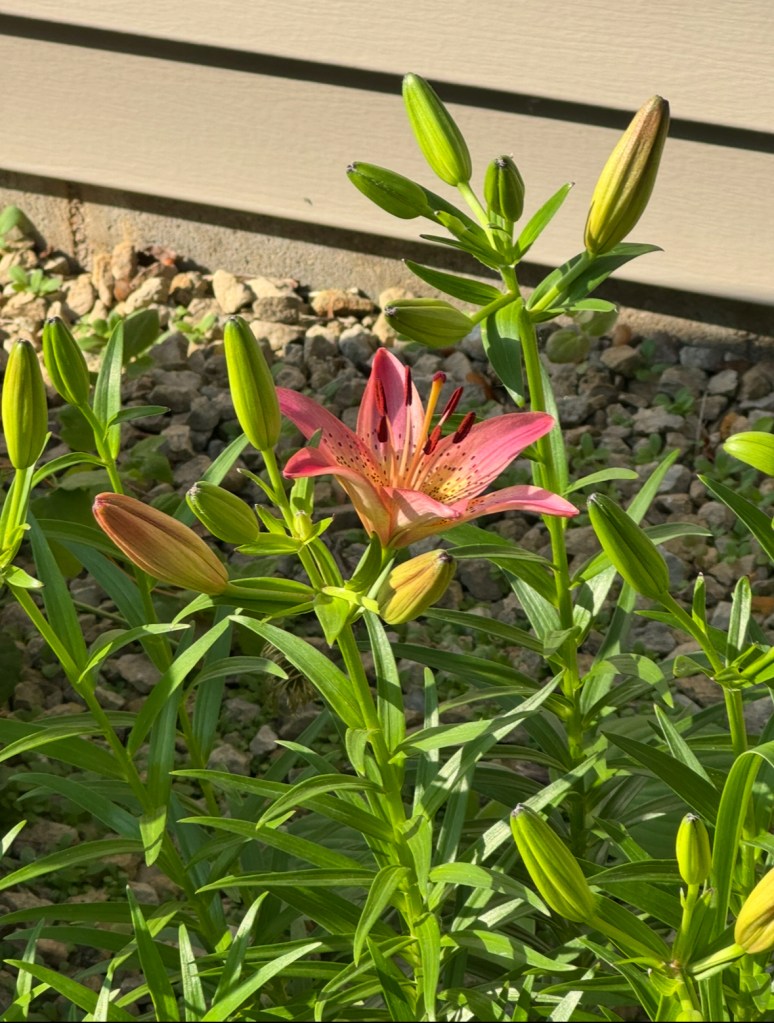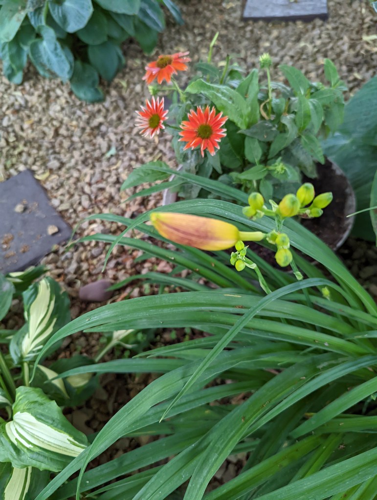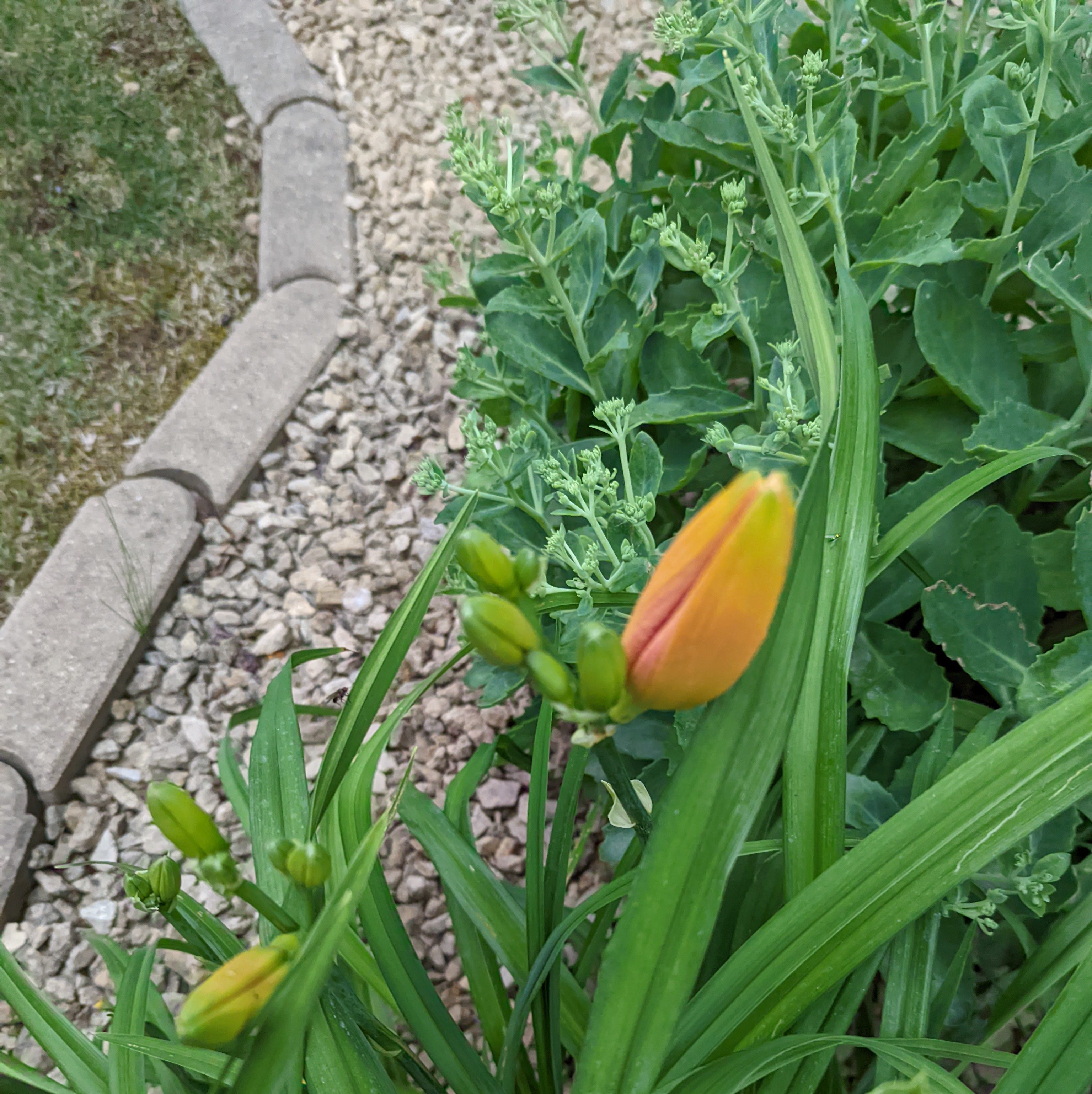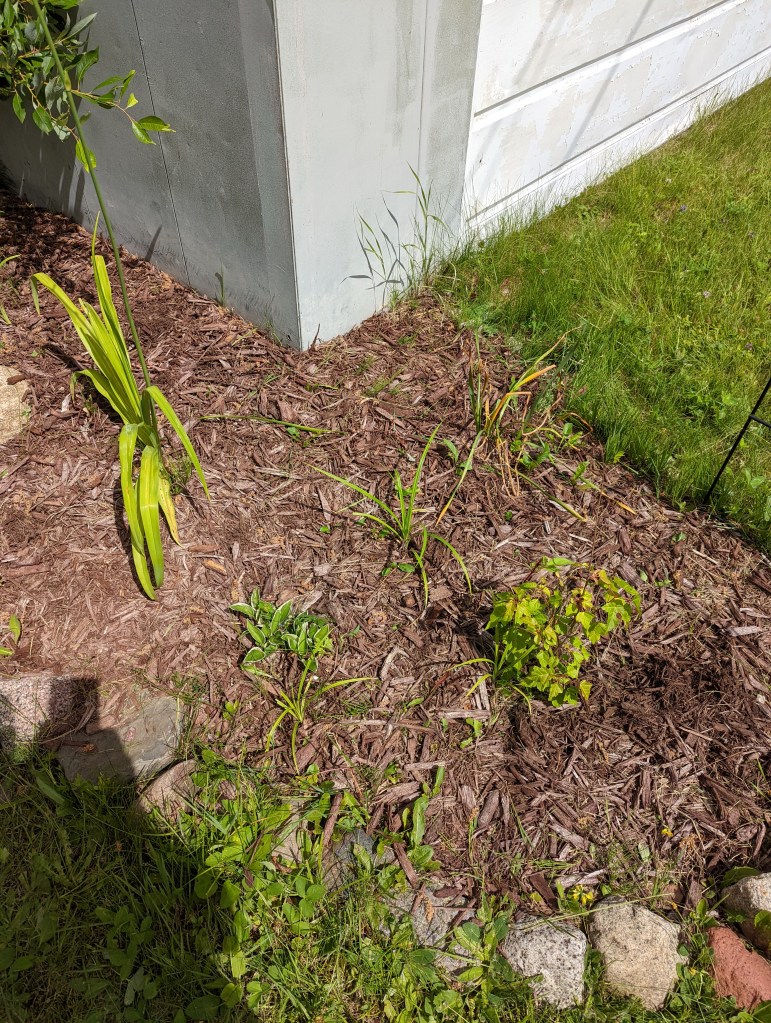 For the past few weeks the Asian lilies have been blooming, the remaining hostas have been scaping out, and every day I have seen more daylily scapes. The spots where we lost all the hostas have been reassigned to match our new phase of gardening here, clover has increasingly been removed, and bunny deterrents are in place.