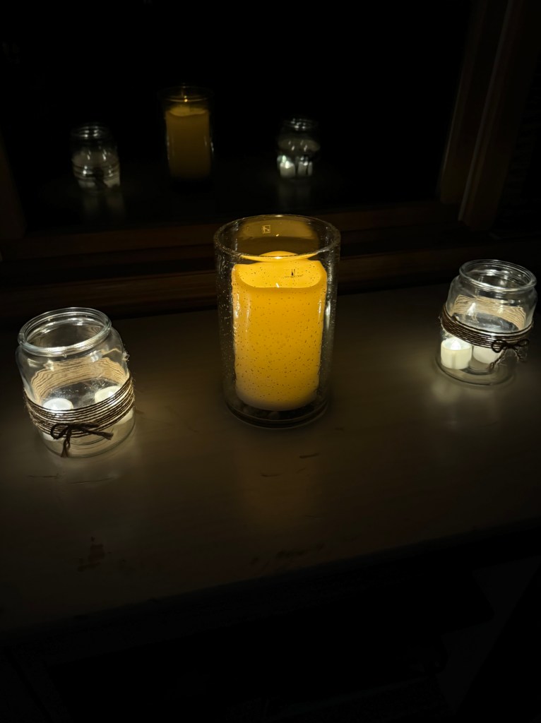 For tonight, I started putting button batteries in the tea lights, and I lit a woodsy candle and drank hot cocoa. Fall is definitely here.