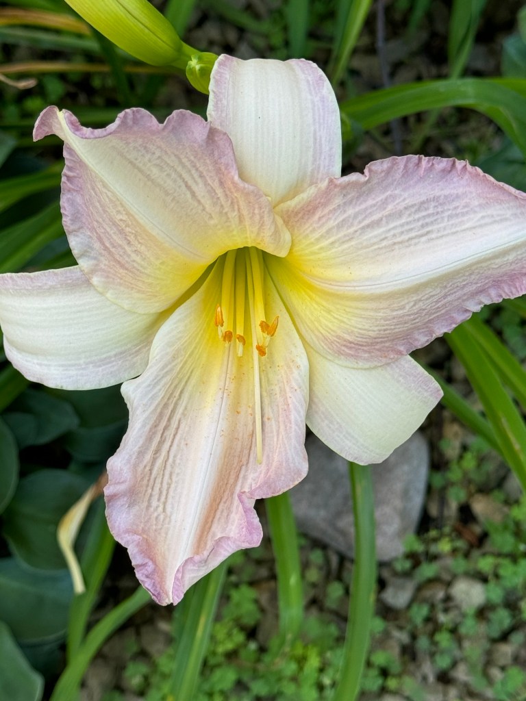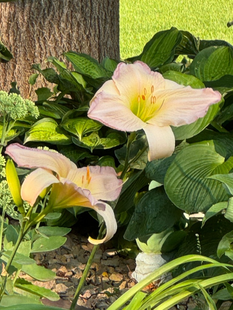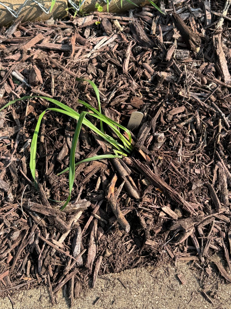 For daylilies, all the longtime daylilies, including those I divided and transplanted, are back. There are two daylilies from last fall’s order that I am still watching for. In a funny twist, they are supposed to be part of my “control” daylilies to compare against what works at the historic cemetery, and also, an easier way to do and monitor crosses. It is much easier to step out the door at the townhouse and do a cross than get in the car and drive to the historic cemetery. Not that I don’t intend to do crosses there. I do. But it will just be a little more time consuming. Full transparency, though? The historic cemetery garden is easily two weeks ahead of the townhouse gardens. It is an all-day sun, retaining wall, mulched garden. The two control daylilies that are missing from the townhome gardens are already up at the historic cemetery garden. I am kind of bumming, kind of thinking, “can you say extended crossing season?” We shall see what actually blooms. Hopefully both of the missing control daylilies will still show at the townhome gardens as well. One is a tetraploid, and one is a diploid. The tetraploid is one of my faves. It is one of the “parents” that are waning in the townhome gardens and also one of the “parents” of a cross I am watching to bloom this year. I was hoping to use the newly planted one this year, but eras change, and the torch may be passing to a new “rock steady”. Long story short, it will be a bit before I can fully say what we have to work with at each location for 2025.