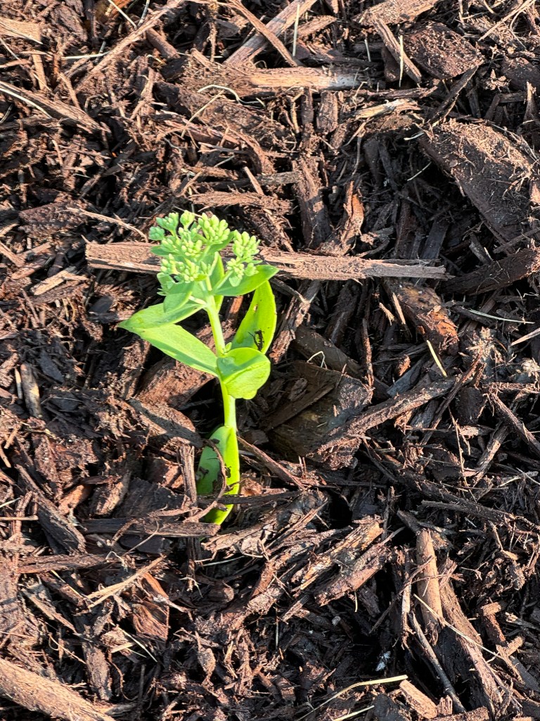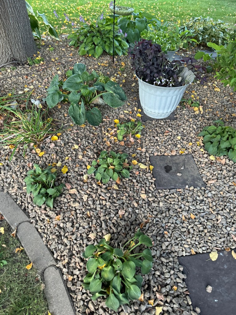 At the townhome gardens, sadly, it looks like we lost two sedum. How that happened for one of them is a mystery to me. That one was our only variegated sedum, and I will miss it. It had been there for a long time, maybe over 10 years, so I am a bit surprised. I won’t replace it with another sedum, but I may put a daylily there this fall. Potentially a seedling. But first I want to refresh my memory on how strongly the sprinklers hit that area. I don’t think the variegated sedum died from sprinkler damage, but I want to make sure it is a safe place. The other sedum that didn’t come back was under the linden. That one never did well. It just never took off. I won’t put anything in that spot to replace it because the daylilies are also starting to underperform there. There are a lot of linden roots. It is a spot I will leave as “rock only” as things fail.