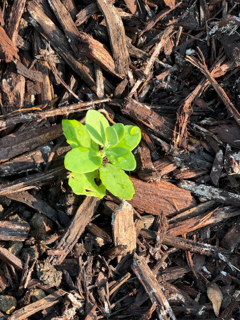 On the flip side, we have a bumper crop of Bluebells clematis volunteers, and those are in the “work” category. I need to transplant them to another area. This area is not optimal 😂
