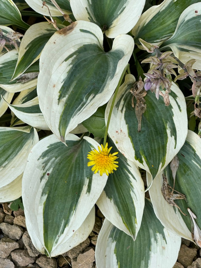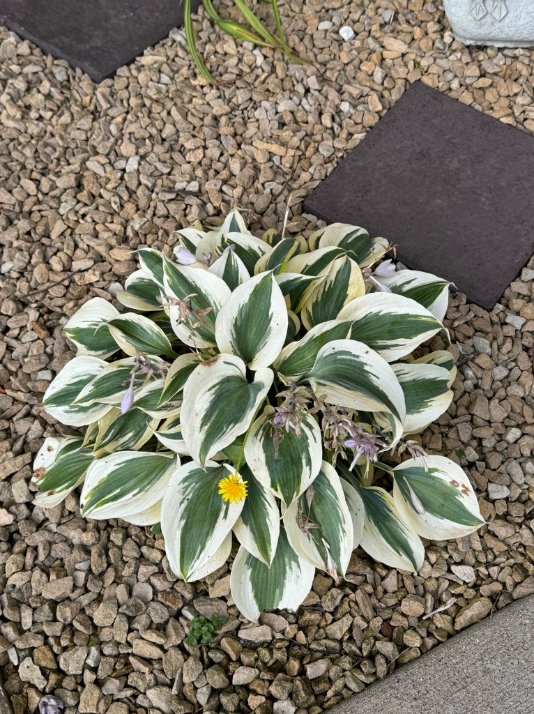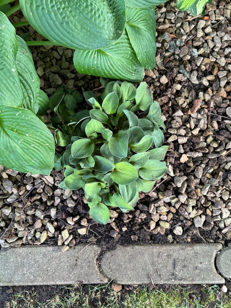 And then, this morning on my walkabout I noticed … we did not lose the Guacamole hosta, as I feared. It is slowly coming up. The two Elegans, not looking good. Oh well. The circle of life.