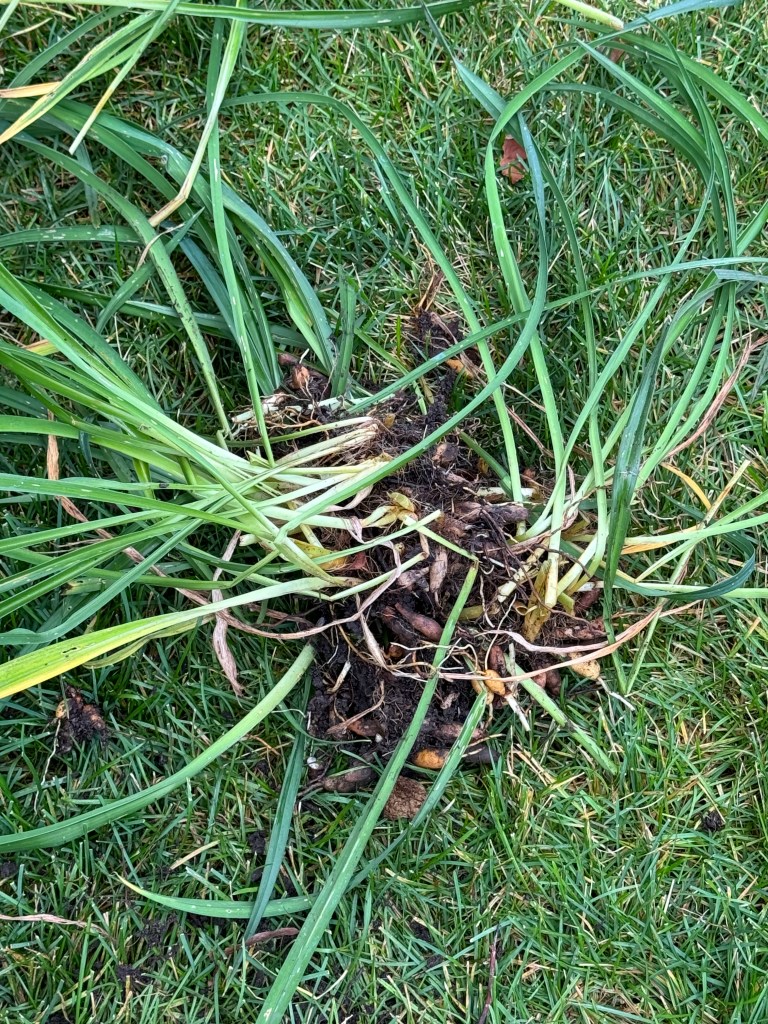 So back to the Purple D’Oro – my husband dug it out, I divided it, and it went in a bag to the historic cemetery, along with the 2024 Purple D’Oro self seed seedlings (from 2023 harvested seed), where I planted them, and some languishing Asian lilies, along with daffodils, today.