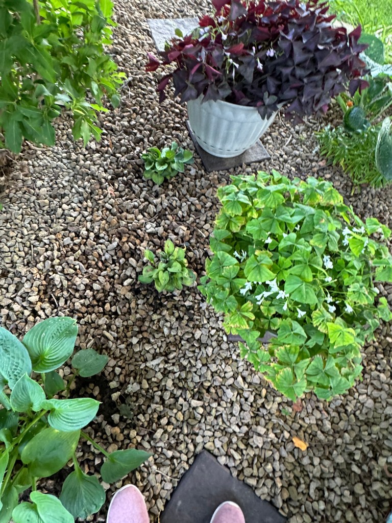 See those beautiful, newly planted Blue Mouse Ears divisions 🥰 And the shamrock that needs dividing this fall 😘