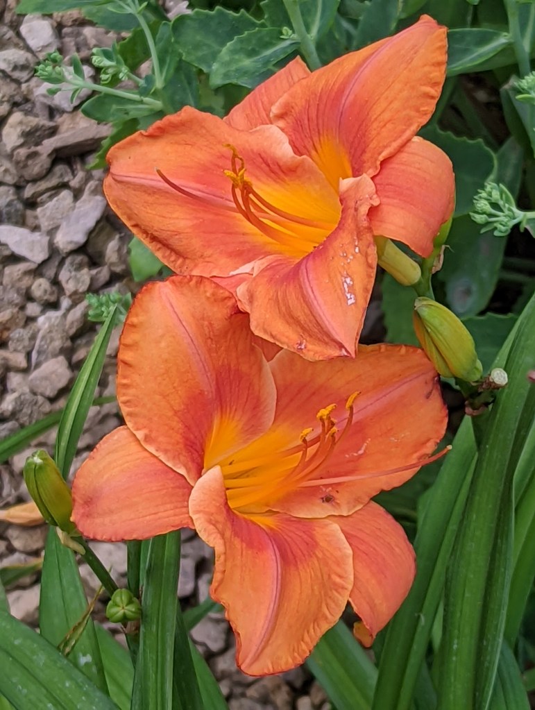 How it does so well in the afternoon sun is a tiny miracle to me. It took a few years to establish – years when there were four or five leaves and one scape. But is is super happy now in that spot.