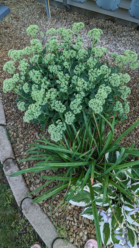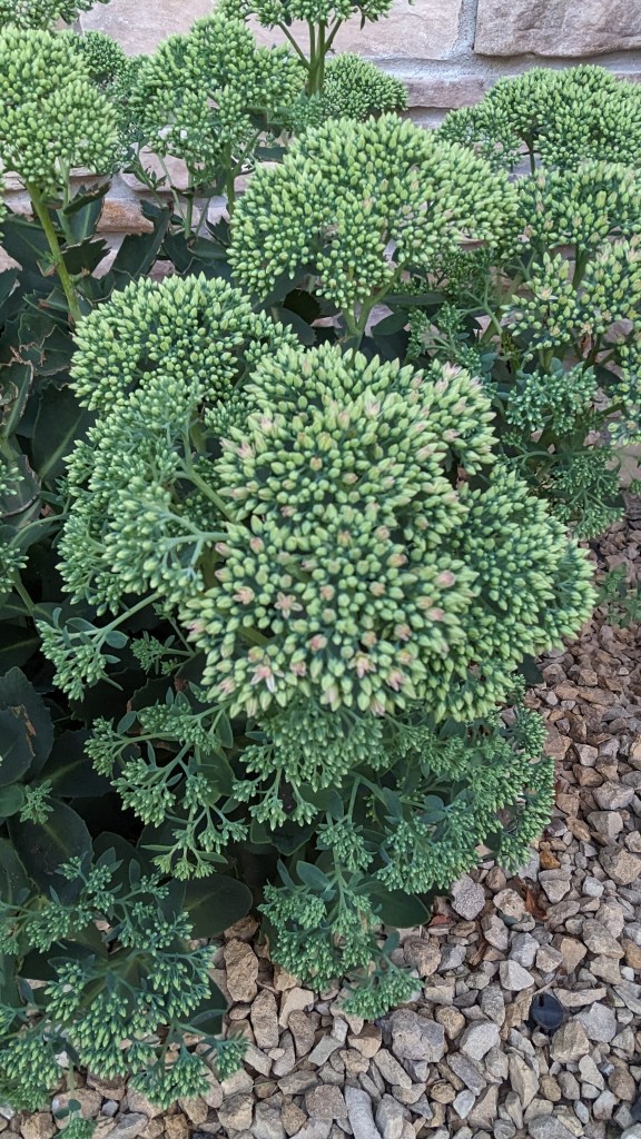 The daylilies are almost done blooming, the hostas are starting to get that “tired” look, but the sedum! I knew it a few days ago! They had that “look” where I was prompted to check for pink. Sure enough! Today they started to bloom! Not all of them, just the ones with the most sun exposure. But it is starting!