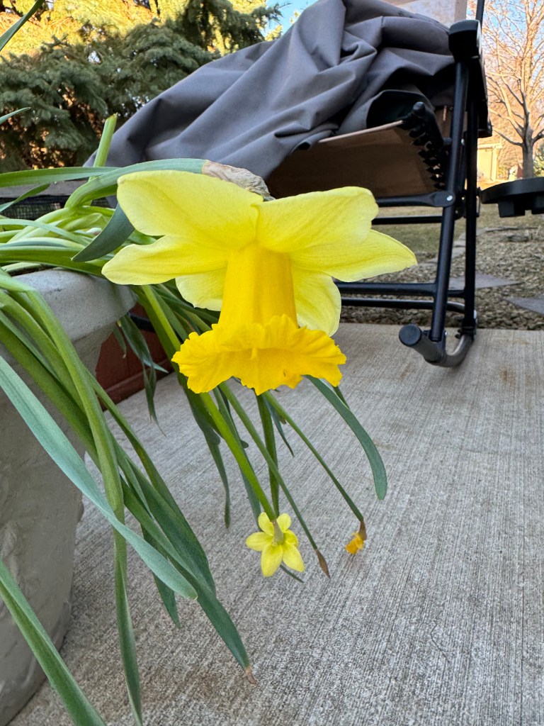 However, when I cut the sedum back in the fall, as much as I try to keep the stems close to the rootball, in the spring it always looks like the picture below. And I, in cleanup mode in the spring, have learned to leave those alone. Because if I don’t, I will have an early spring need to reroot stems, usually when all my dirt is still neatly in bags in the garage.