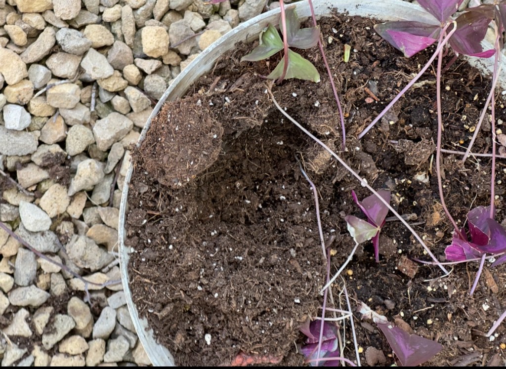 But, there is a shenanigans story in the townhome gardens too. I suspect they are of the bird variety. After over fifteen years of birds being helpers in cleaning up the shamrocks, we might have a crop of mess makers this year. They have decided to make quite the mess of all the purple shamrocks. No worries. There are so many shamrock rhizomes. I brought them in and will restart them in the house. Sorry birds. No more purple shamrocks fun for you this year.
