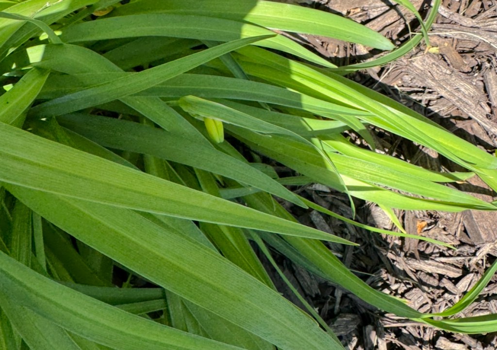 Last Friday I was weeding at the historic cemetery. I was down to the end where there are some mature Stella de Oros. Full disclosure, Stella de Oros are not daylilies I would buy. I do like the color. The size is not the issue. It is just that they are everywhere – in residential gardens, commercial landscaping, everywhere. But … they are daylilies, they are improving in health since the rock was switched out to mulch, and they were gifted to the historic cemetery garden before I started in earnest, so they stay. Stella de Oros also bloom fairly early, so they are a harbinger of the start of the daylily blooms on the way. So, last Friday, as I was wrapping up weeding, I looked over and there it was – a scape, on a Stella de Oro.