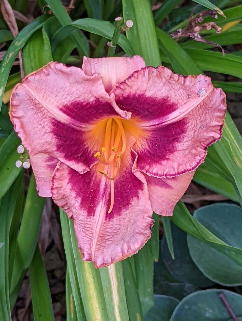5 of those purchased daylilies ended up going to the little house up north. My husband put them in the ground on one of the trips up for materials to our contractor. It was a stressful trip, and I said to just put them in the ground and I would sort it out in spring. I only got to see one of those bloom, and it was partially either eaten or something else happened. Persian Market was one of the 5 that went up north. I think it was the one I saw partially bloom.