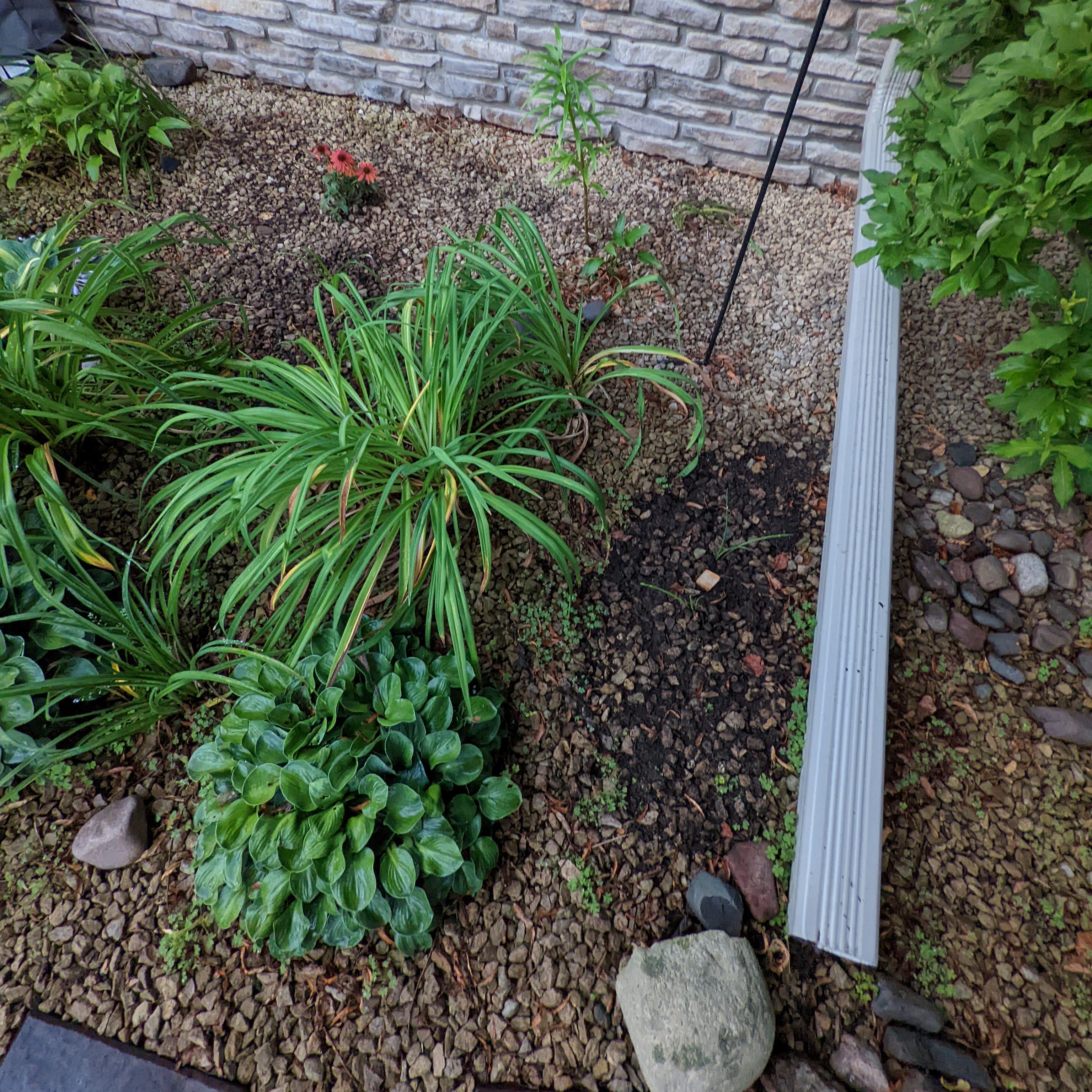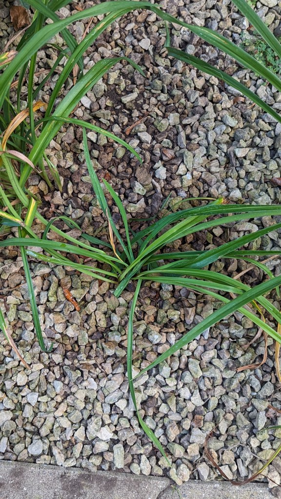 There are also a few daylily moves in scope. “Unknown Yellow Daylily Freebie with Order” out front does not like her current location and has only bloomed one out of the past three years. I have a spot for her out back. Yellow is not a large part of the front daylily palate, so moving it is a good decision on the color scheme, as well.