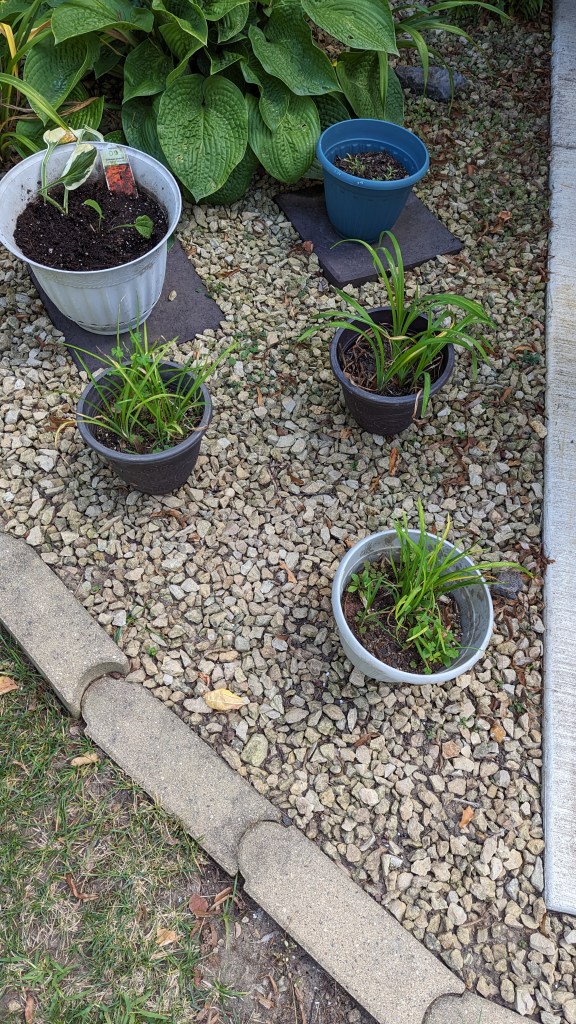 Since I last blogged, I have planted all of the seedlings except the seedlings that will go to the historic cemetery. The gardens are a sea of pods, very fall-ish. There are 55 pods maturing. Well, 53 as of yesterday when I harvested 2. I expect we will not have any true need to buy daylilies – for the townhome, for the historic cemetery, for anywhere – go forward. I may buy one here and there that I want for crossing, but even that is to be determined. When I was looking at my wish list from spring, I went ahead and deleted it because everything on that list was very similar to what I saw come up in our self-seed seedlings this year. I think I am good for now.