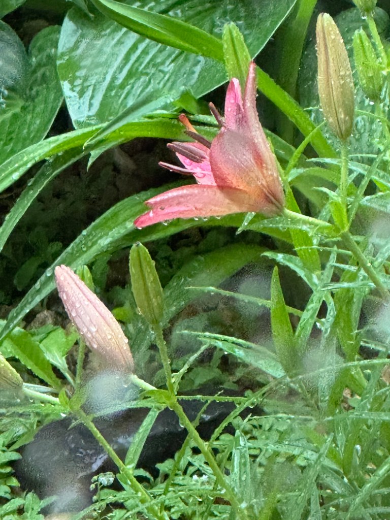 This morning, I was treated to a fully opened peach Asian lily and the first opened hosta blooms.
