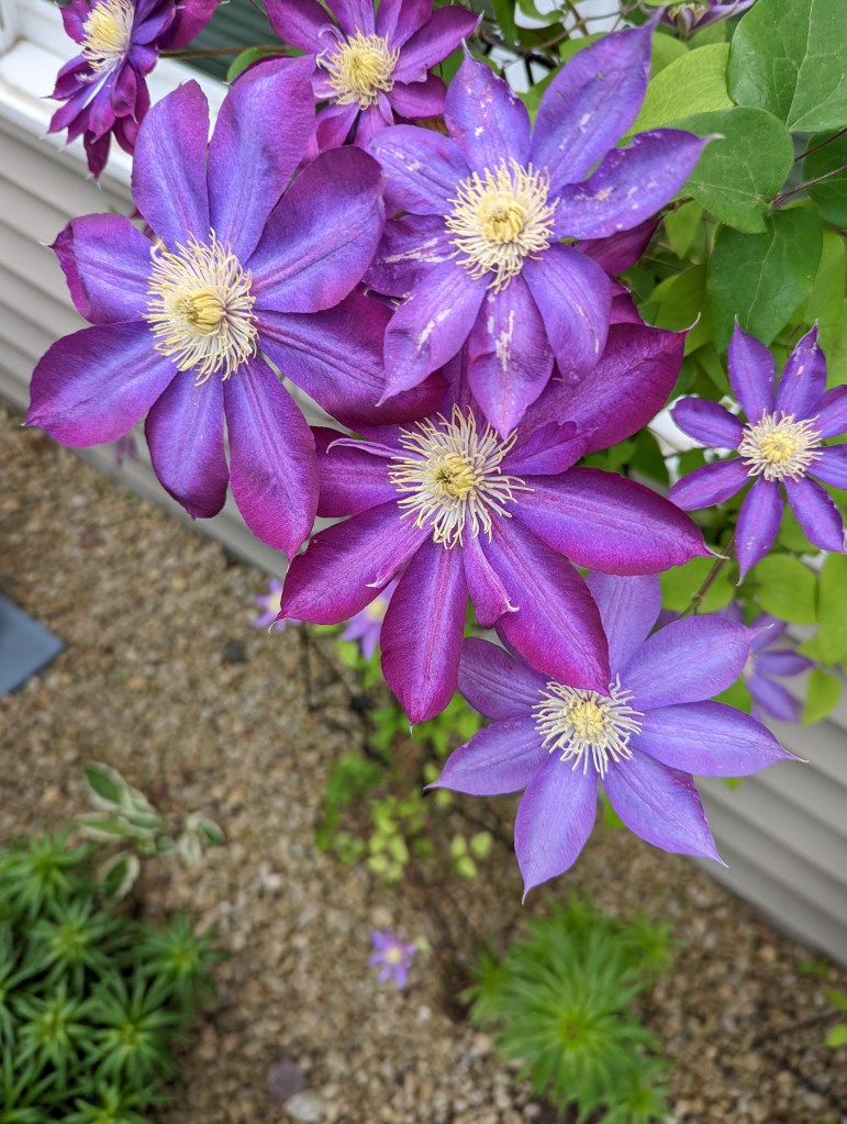 We are getting some bonus clematis blooms.