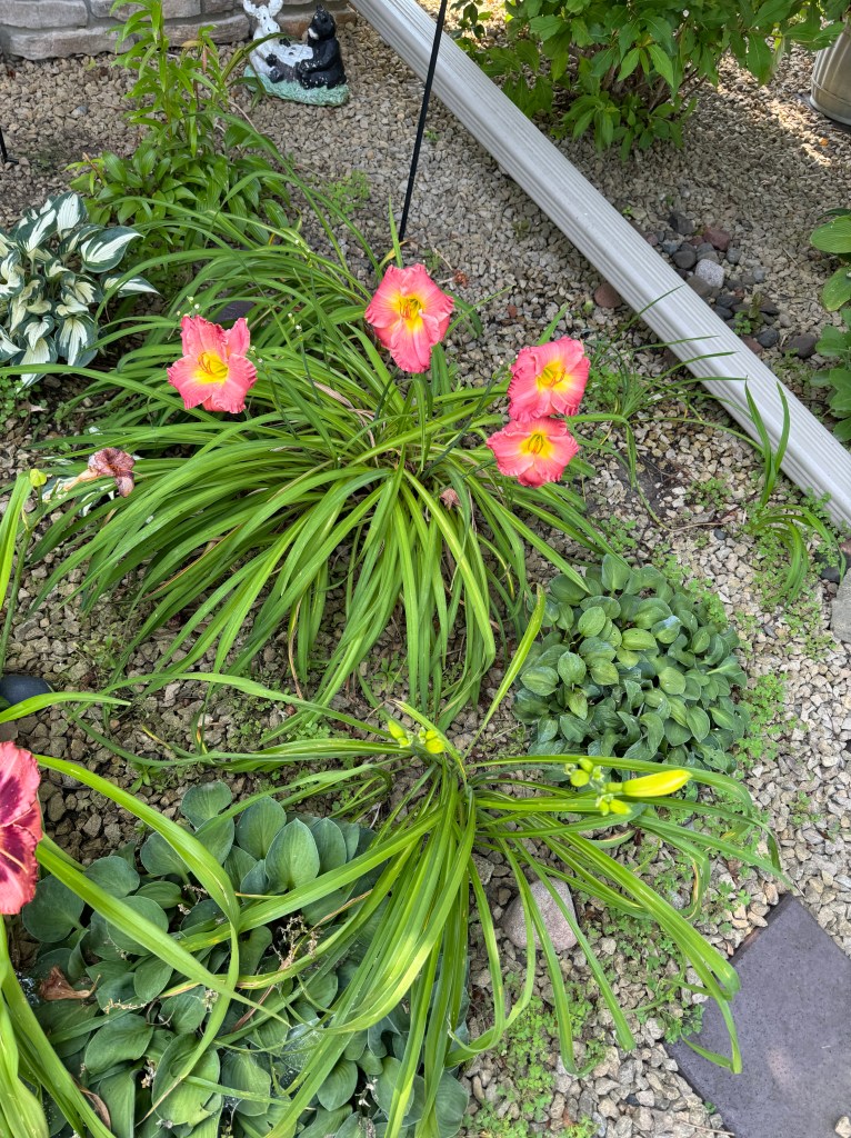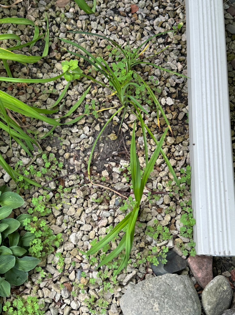 In addition to normal maintenance – trimming, weeding – I am now working on my 10 week countdown checklist. That is my planned garden adjustments, broken down into bite sized pieces. That list is bold. Digging things out, moving them around, even some disposing. Some annual adjustments are easier than others, for a number of reasons. So week(end) 1 was to dig out three self seed daylily seedlings from 2022 and plant them at the historic cemetery fence garden. I put this as week 1 because they are getting bigger and are now in my husband’s direct path to the hummingbird feeder.