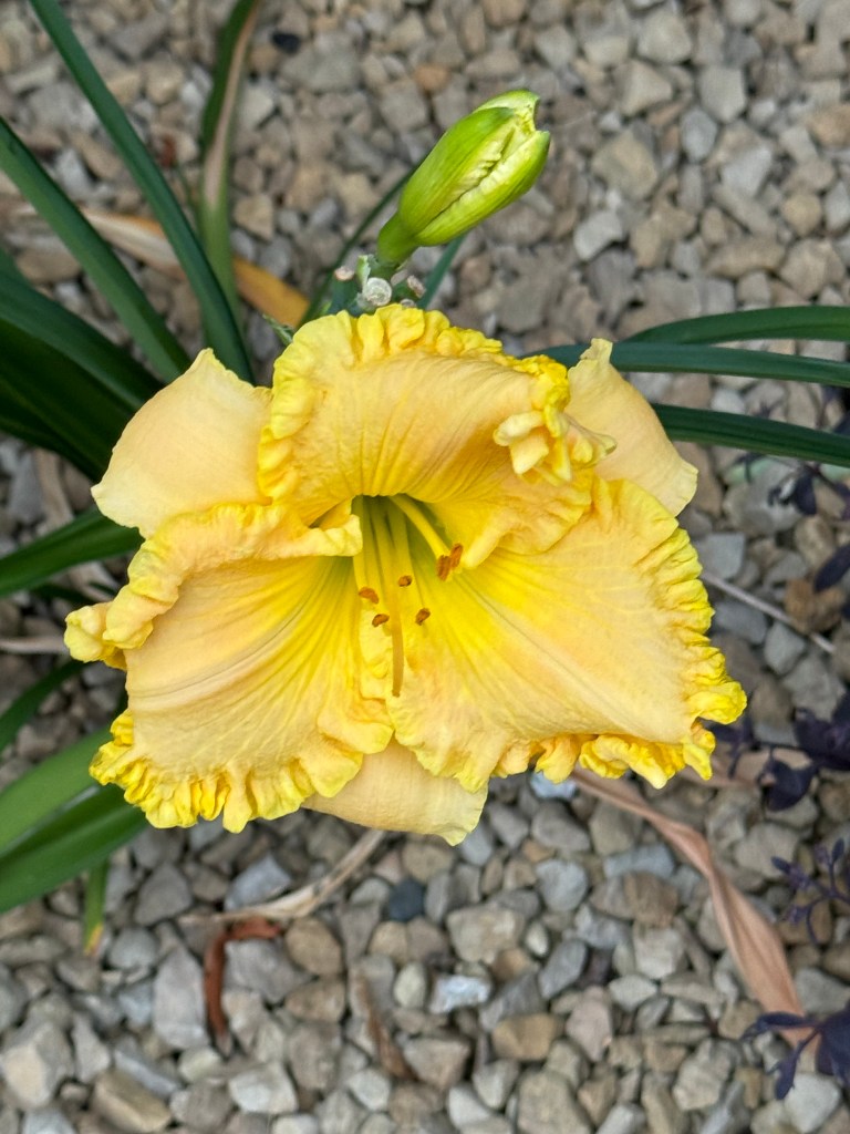 Cedar Waxwing also got a rest yesterday and today while she wrapped up. Today she bloomed her last bud of 2024. Rest well dear Cedar Waxwing. You shall get some daylily food for sure too.