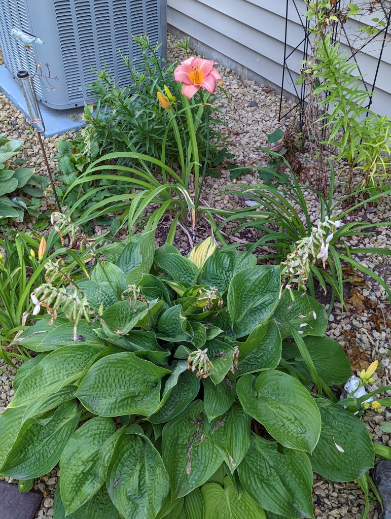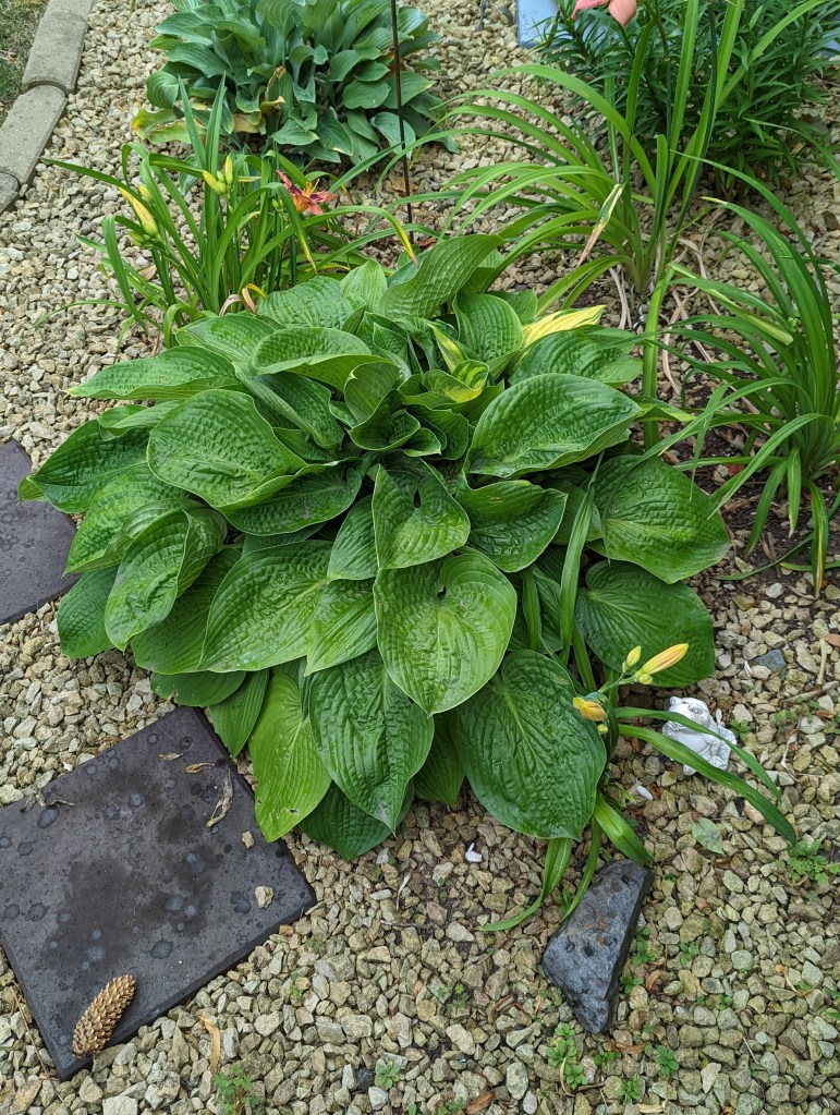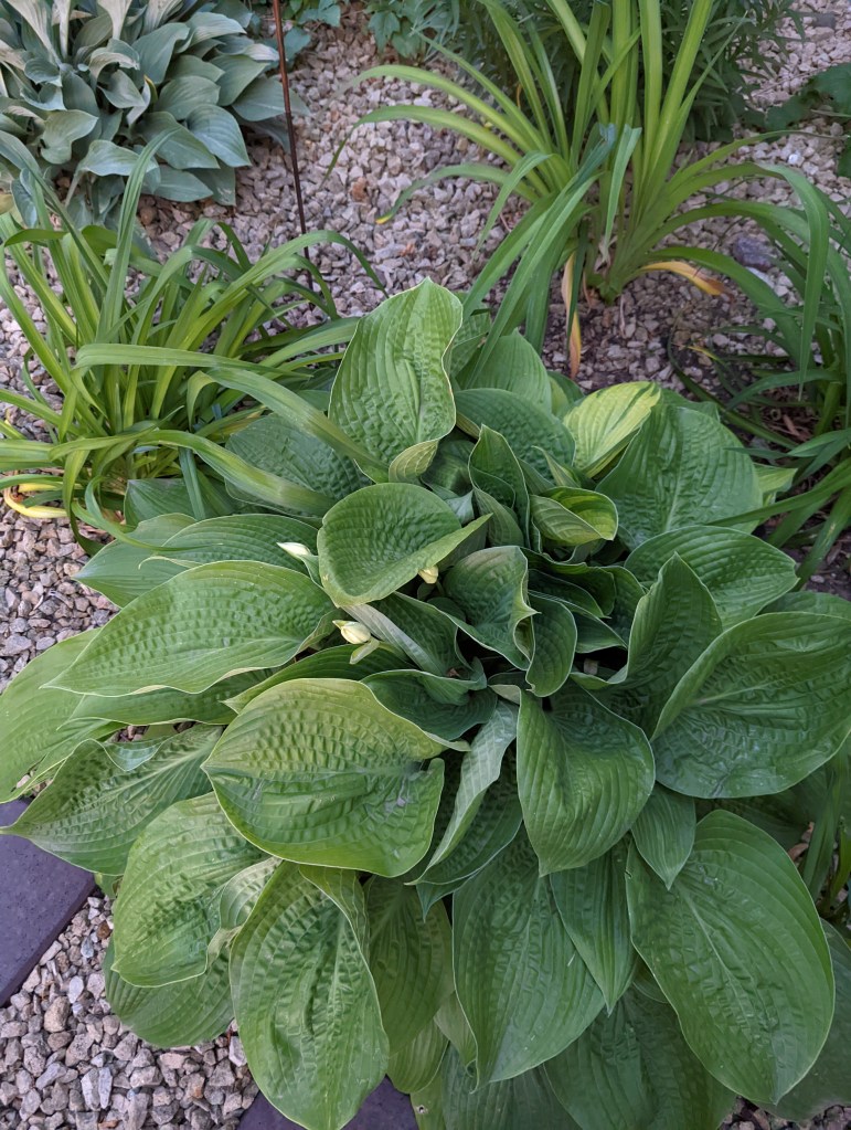 Sometimes, a “kid” comes home after a short stint in another garden. This beauty coming up is a Rainforest Sunrise hosta. One of my absolute favorites. Back when we thought we were going to ultimately move to the little house up north, I dug her up out of one of the townhouse garden areas and brought her up there. At first she seemed good, then “ok”, but when we sold that house, she needed to rebound. The no-see-um bugs were eating her foliage, and she was covered with ants. We dug her out, cleaned her up, and brought her back home, to the townhouse, to hang out again with all her peeps and shine.