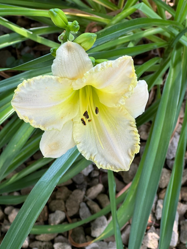 Today dawned rainy, and kept on that way, even adding periods of heavy rain and some periods of thunderstorms. I had been out early during a break in the action and even determined there was no pollen source for my designated crosses today, so “let it rain”. Indoors, I took the time to putz, unpack some deliveries, do some laundry, have multiple cups of tea (after one cup of coffee 🥰) and … put together a week by week garden adjustments/additions plan. Now, remember I still work a very full time job, and we have lots of life stuff, so this 10 week plan is really just 2-5 hours per week. Sometimes it is expected to be relaxing and slow – remove a failing hosta and clematis for disposal and transplant another clematis and 3 smaller, groundcover hostas into that space. Sometimes it is expected to be kinda exhausting and dirty and sweaty, like dig out remaining daylilies in big overgrown garden at the historic cemetery and transplant them into the fence garden there. Both examples are “one week”. They may even be broken up into separate segments or even days, but they are “one week” of work.